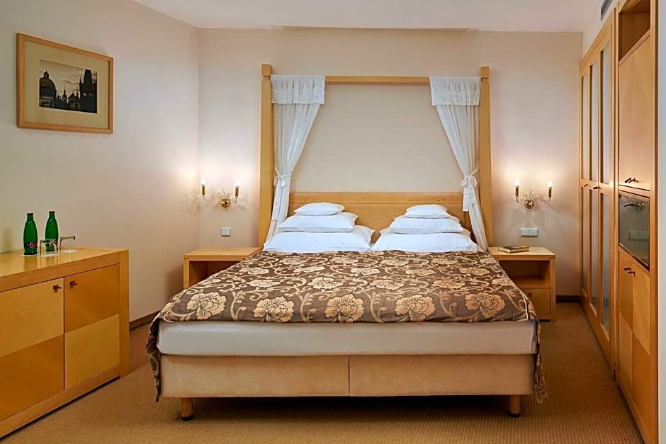 The superior double rooms are up to 85 ft² in size and come equipped with a desk and an private bathroom with a bathtub designed by Philippe Starck. These rooms boast a view of the Týn Cathedral or the King´s Road.